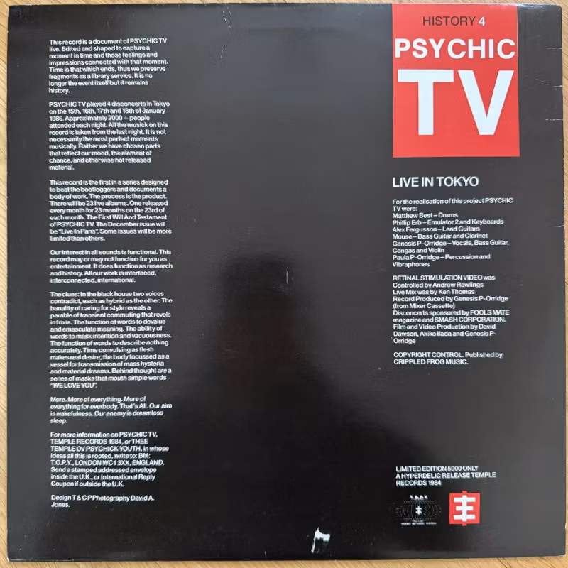 PSYCHIC TV Live In Tokyo (Temple - UK original) (VG+) LP