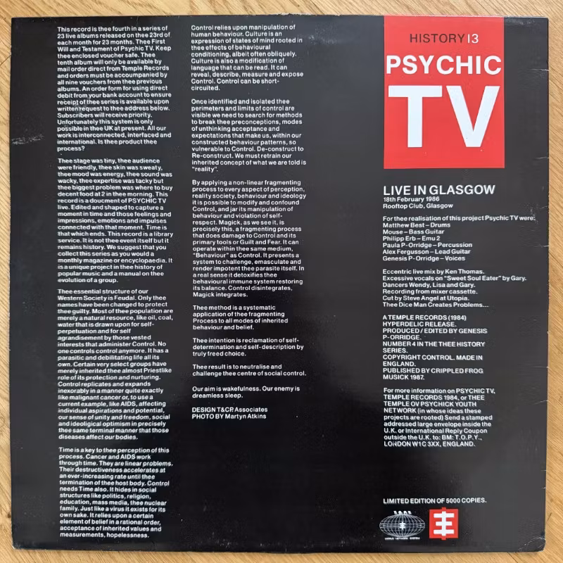 PSYCHIC TV Live In Glasgow (Temple - UK original) (VG+) LP