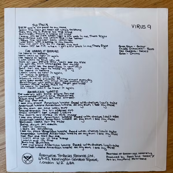 Alternative Tentacles – VIRUS 9. UK 1982.
