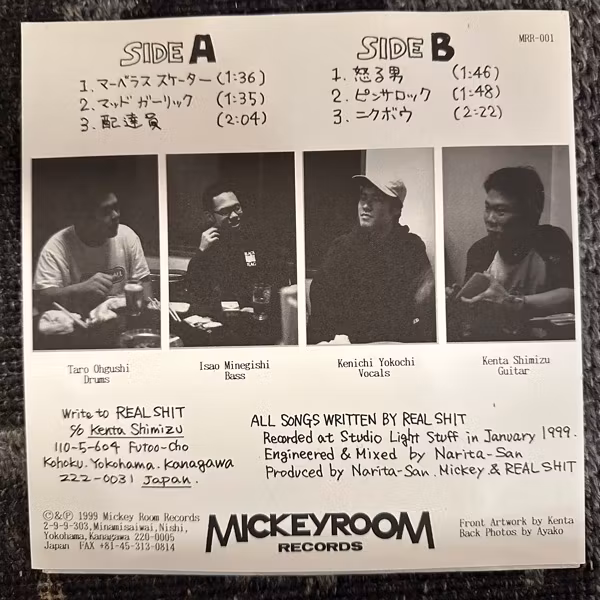 Home › PUNK, Hardcore, Oi! › REAL SHIT Real Shit (Mickeyroom - Japan original) (EX) 7" REAL SHIT Real Shit (Mickeyroom - Japan original) (EX) 7" 0 kr 70 kr Sorry, this item is out of stock. Sleeve: EXRecord: EXInsert: EXComes with insert.Japan Hardcore Punk.Mickeyroom Records – MRR-001. Japan 1999. You'll probably like these as well HUMAN RACE Negative (Dead Beat - USA original) (SS) LP 100 kr Info UNSEEN, the Internal Salvation (Orange vinyl) (Papagájův Hlasatel - Czech Republic reissue) (SS) LP 150 kr Info RADIATORS FROM SPACE, the TV Tube Heart (Chiswick - UK original) (VG-/VG) LP 120 kr Info VARIOUS Dope-Guns-'N-Fucking In The Streets Volume 1-3 (Amphetamine Reptile - Europe original) (VG+) LP 150 kr Info