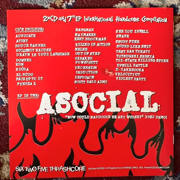 Hardcore Punk / Thrash compilation. The 7" is Asocial - How Could Hardcore Be Any Worse 1982 Demo, and the CDs includes Oxbaker, Face Up To It, Short Fuse, Bruce Banner, Haymaker, and many more.