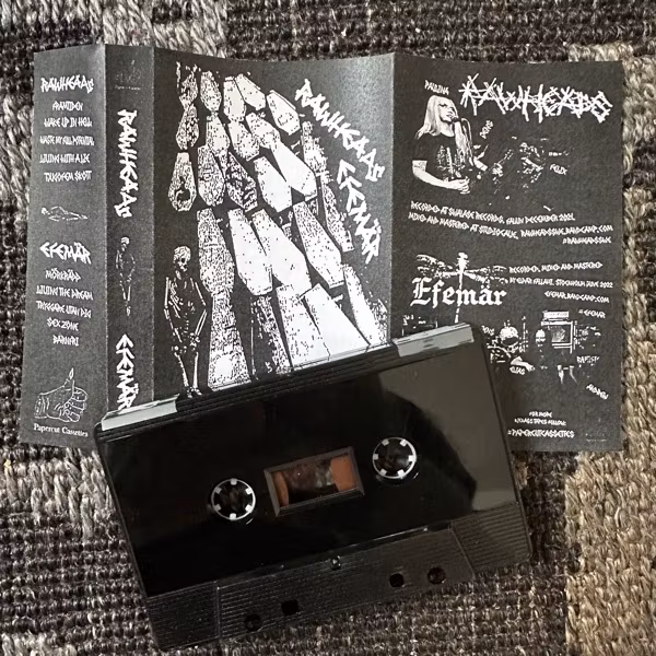 Home › TAPES › RAWHEADS / EFEMÄR Split (Papercut - Sweden original) (NM) TAPE RAWHEADS / EFEMÄR Split (Papercut - Sweden original) (NM) TAPE 0 kr 50 kr Sorry, this item is out of stock. Inlay: NM Swedish Hardcore Punk.Papercut Cassettes – PPC004. Sweden 2022. You'll probably like these as well DECOMPOSING SERENITY Give The Children Her Severed Head (Self released - Australia original) (EX) TAPE 100 kr Info